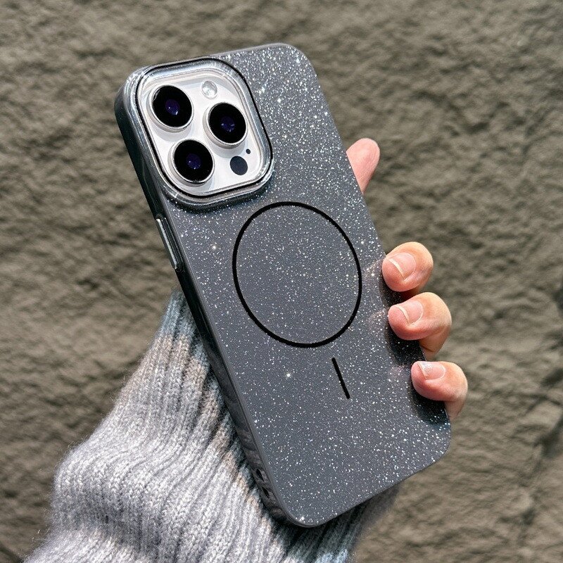 Futrola Glitter MagSafe za iPhone 16 Pro Max crna