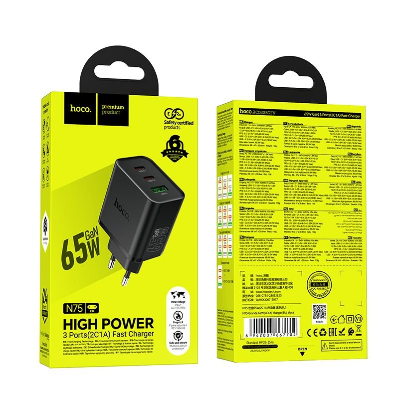 Hoco N75 je odlican izbor za korisnike kojima je potrebno brzo, sigurno i efikasno punjenje vise uredjaja u isto vreme. Zahvaljujuci snazi do 65 W i pametnom upravljanju energijom, predstavlja pouzdano resenje za svakodnevnu upotrebu.