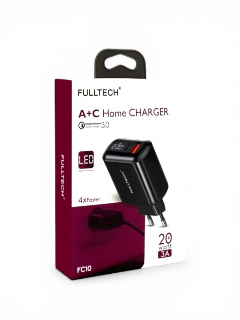 Kucni punjac (kuciste) FULLTECH A+C FC10 (led display) 3A 20W crna